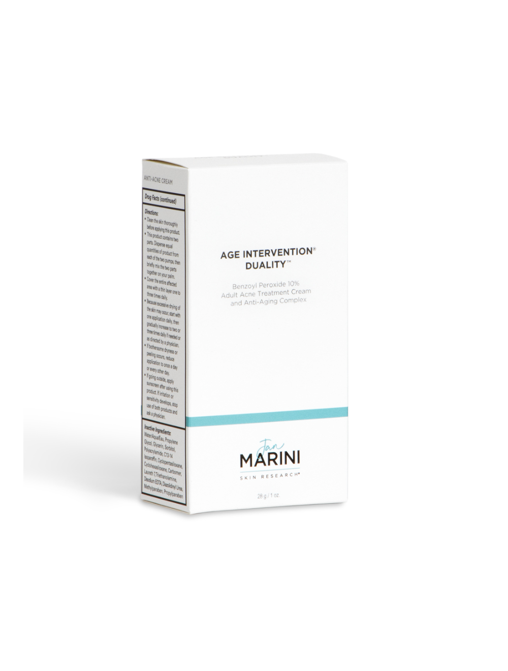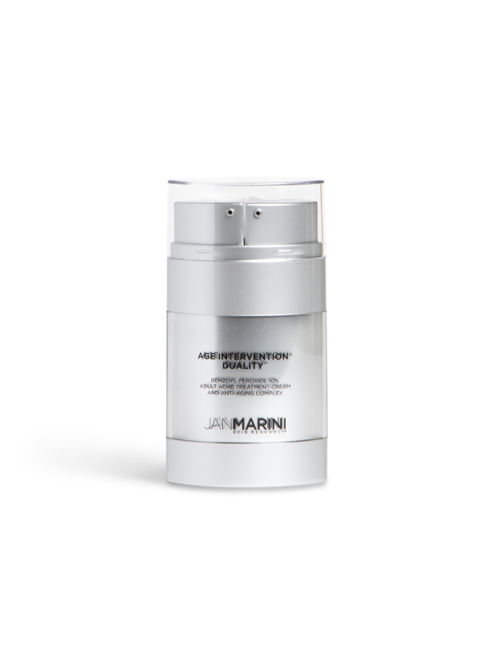 Serious acne control and dramatic benefits to aging skin, in one amazing product. Its unique dual chamber dispensing solution combines some of the most proven, yet previously incompatible, technologies in one product. The maximum allowed percentage of ultra-micronized benzoyl peroxide, highly concentrated all-trans-retinol, green tea extract, anti-aging peptides, advanced hydrators and antioxidants deliver unparalleled results in an easy to use solution. Age Intervention Duality addresses even the most stubborn adult acne while simultaneously minimizing the appearance of fine lines and wrinkles.