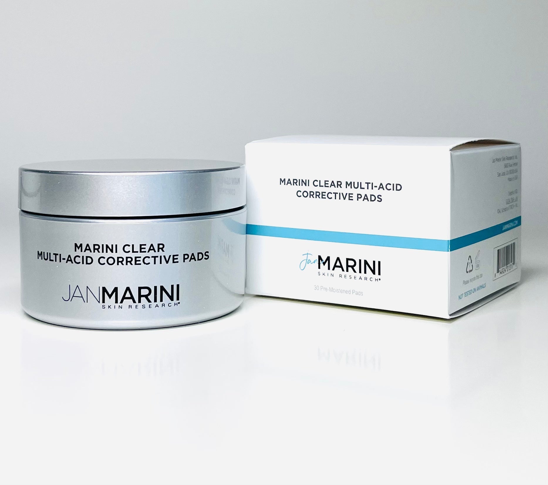 • Jan Marini Clear Multi-Acid Corrective Pads in a circular container, showcasing the pads and packaging design.