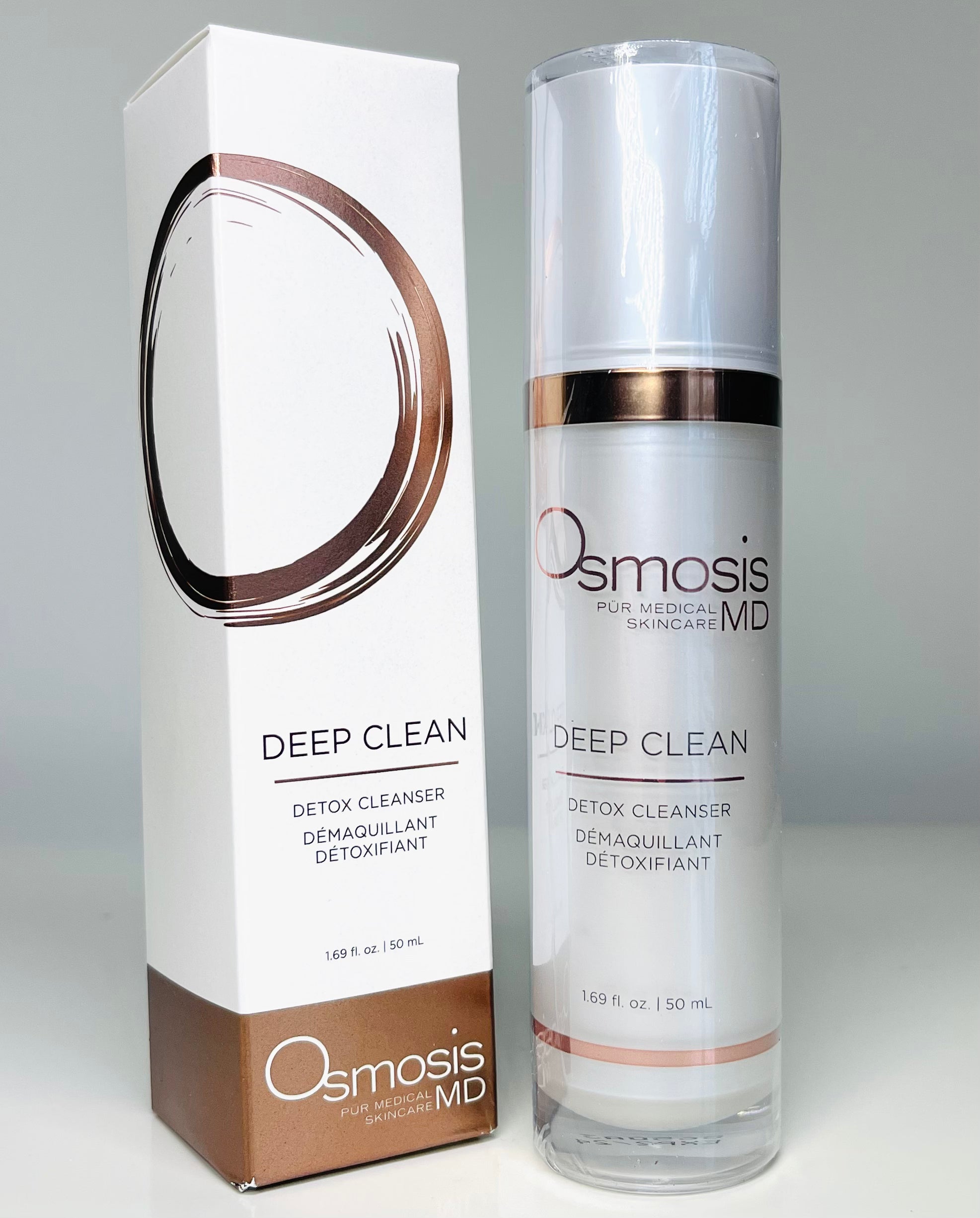 • Osmosis Beauty Deep Clean Detox Cleanser in a sleek 50mL bottle, featuring a clean and calming design for skincare routines.